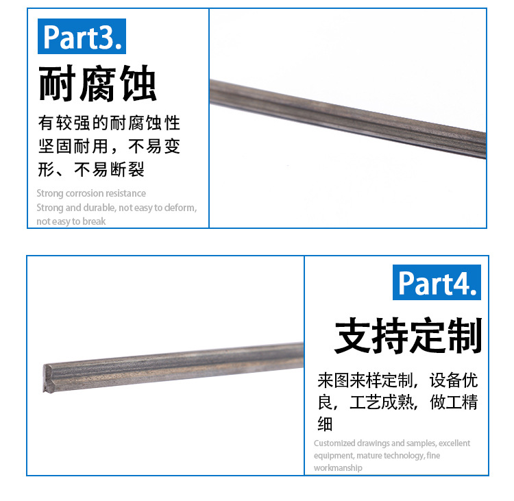 异形线材生产装置经过两年多的困苦研究和仿造国外生产线,成功开发了可以用国产和进口材料生产的全自动生产线。可以根据客户要求定制各种基准,材料形状繁杂,精度高。不锈钢异形丝,弹簧丝,精度可达±0.005mm,厚度可达0.035mm,抗拉强度200〜2200,硬度HRC15〜54度。